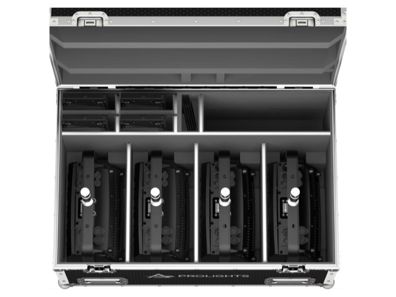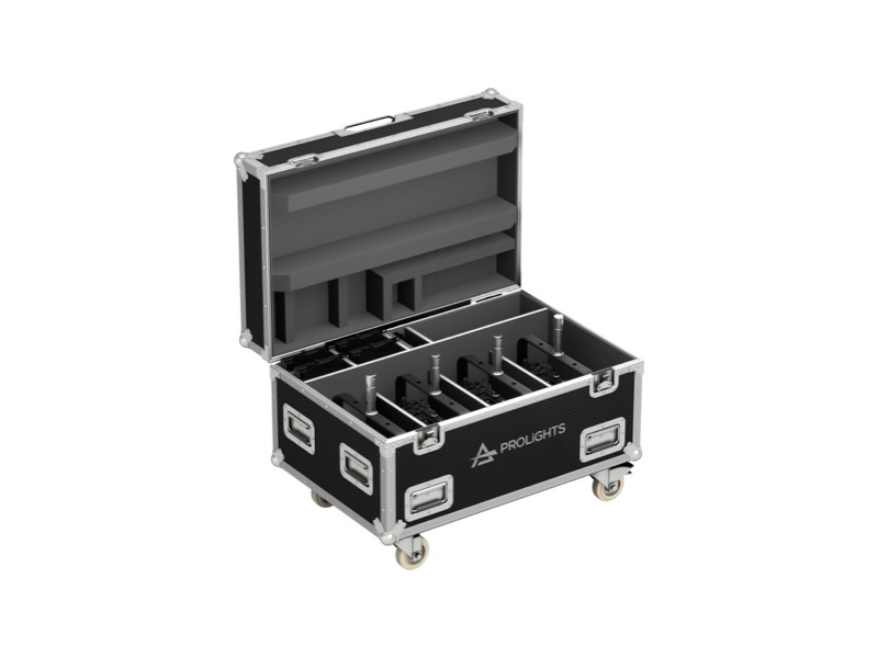 Flight case de transport pour 4 projecteurs de la marque Prolights EclExpo Flood 300 IP VW (ML410IP) ou EclExpo Flood300 IP FC (ML411IP).