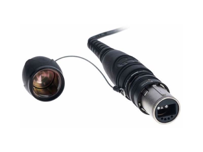 Câble fibre optique monomode équipé de connecteurs opticalCON Duo. Câble robuste et connecteurs IP65 avec protection accrue contre la poussière.