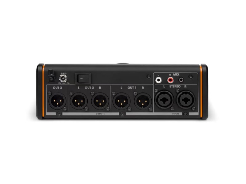 Le MONICON L offre deux sorties stéréo et une sortie mono indépendante, assurant une grande flexibilité de configuration — idéale pour connecter simultanément des moniteurs principaux, des écoutes secondaires ou un caisson de basses. Son potentiomètre analogique de grande taille permet un réglage précis et fluide du volume général.