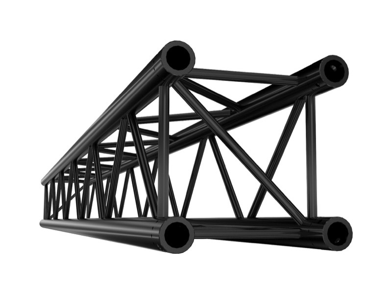 La série lourde M290 QUATRO permet des longueurs consécutives de 20 m et une charge admissible exceptionnelle pour des scènes de grandes tailles, en intérieur comme en extérieur. Elle offre des entretoises diagonales aux extrémités pour éviter les phénomènes de torsion.