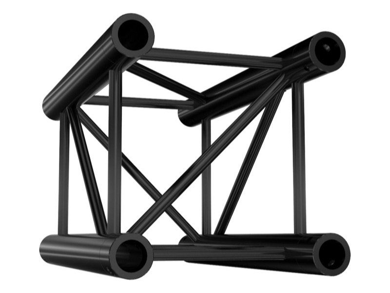 La série M290 QUATRO permet des longueurs consécutives de 20 m et une charge admissible de bonne capacité pour des scènes et installations de tailles moyennes, en intérieur comme en extérieur. Elle offre des entretoises diagonales aux extrémités pour éviter les phénomènes de torsion.