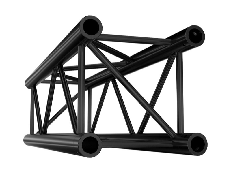 La série M290 QUATRO permet des longueurs consécutives de 20 m et une charge admissible de bonne capacité pour des scènes et installations de tailles moyennes, en intérieur comme en extérieur. Elle offre des entretoises diagonales aux extrémités pour éviter les phénomènes de torsion.